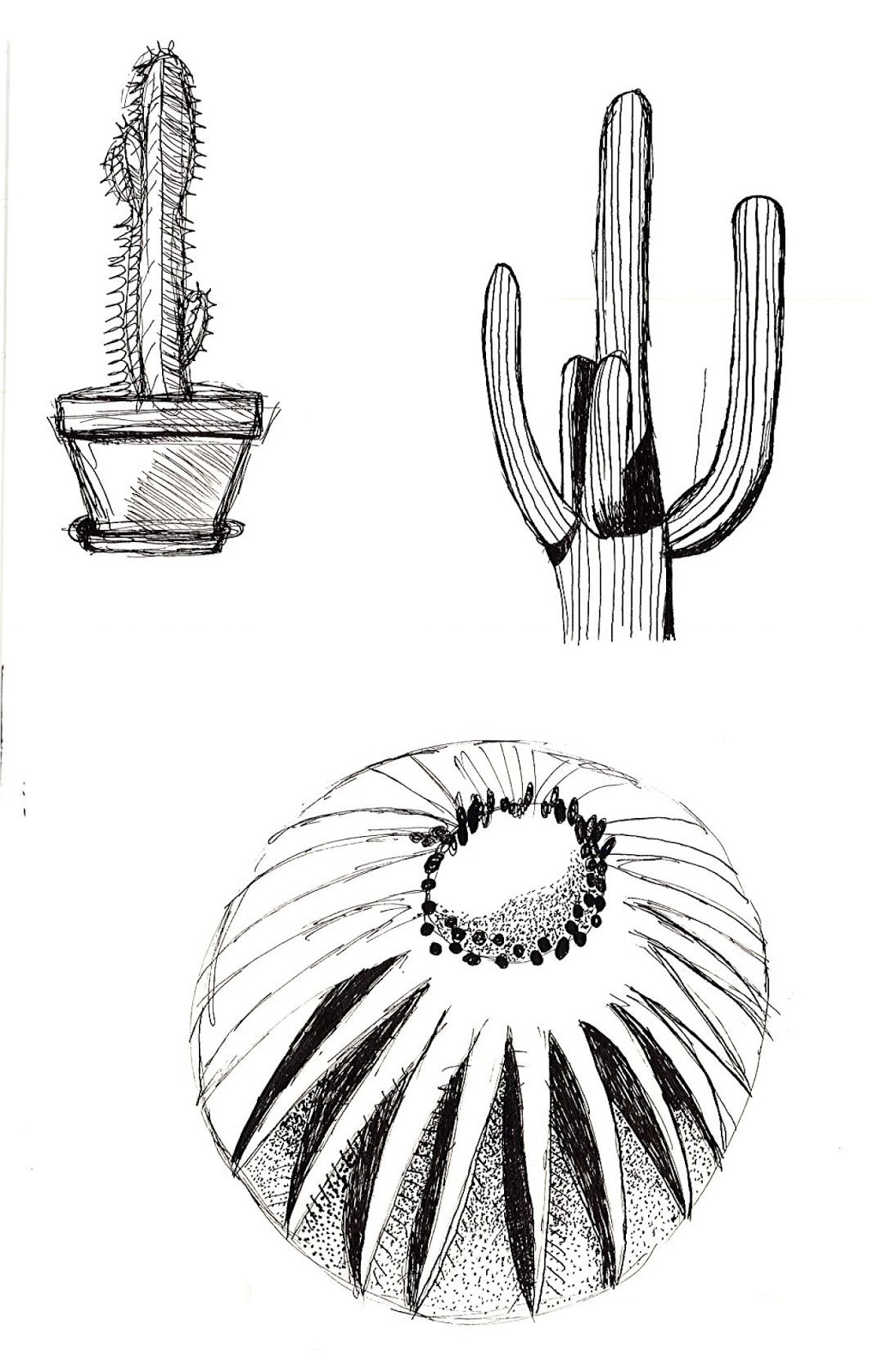 | Croquis in situ - serres aux cactus - jardin des plantes de la ville de Nantes |